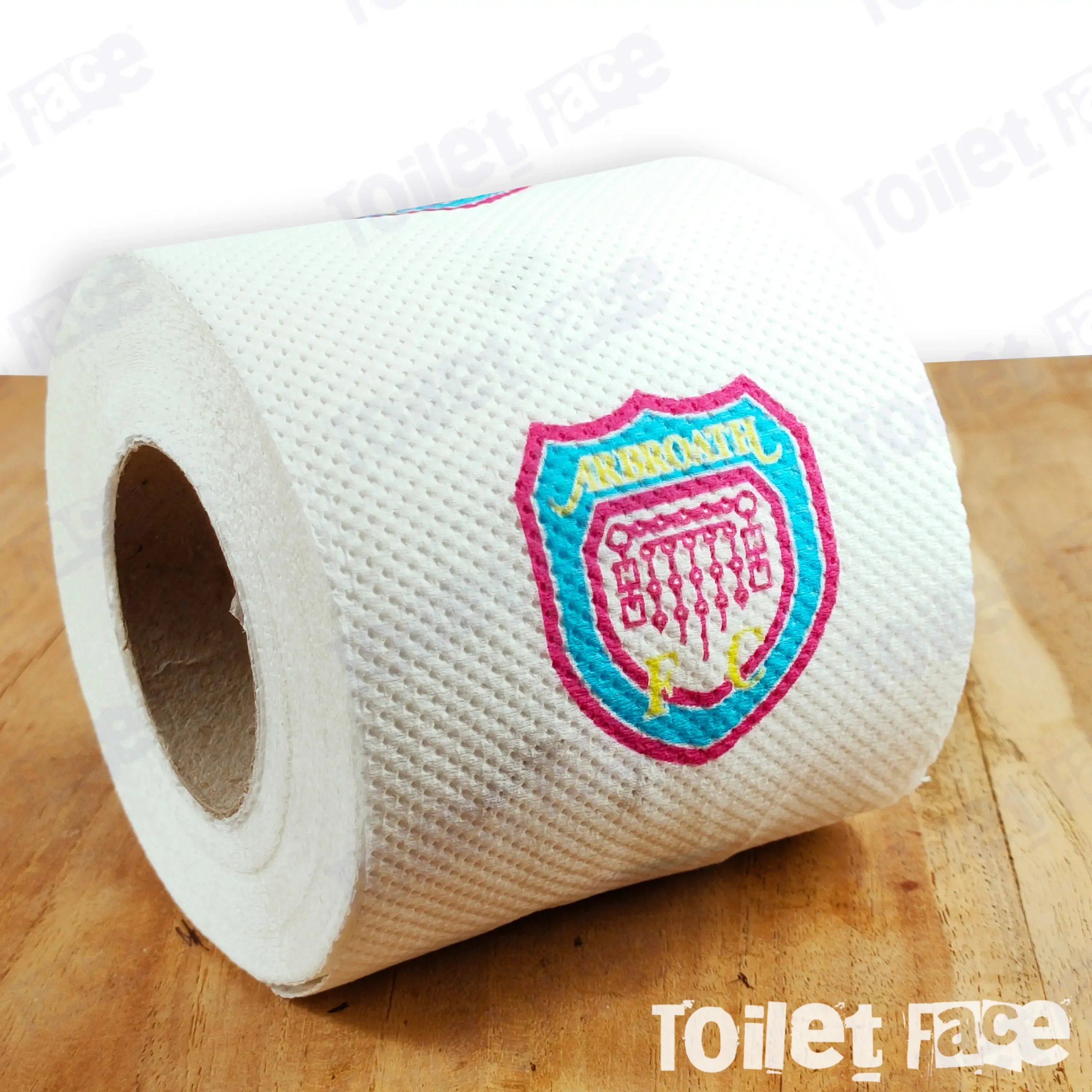Purchase our Arbroath Novelty Toilet Roll, featuring the logo on every sheet and crafted from recycled paper, making it an eco-friendly gift choice
