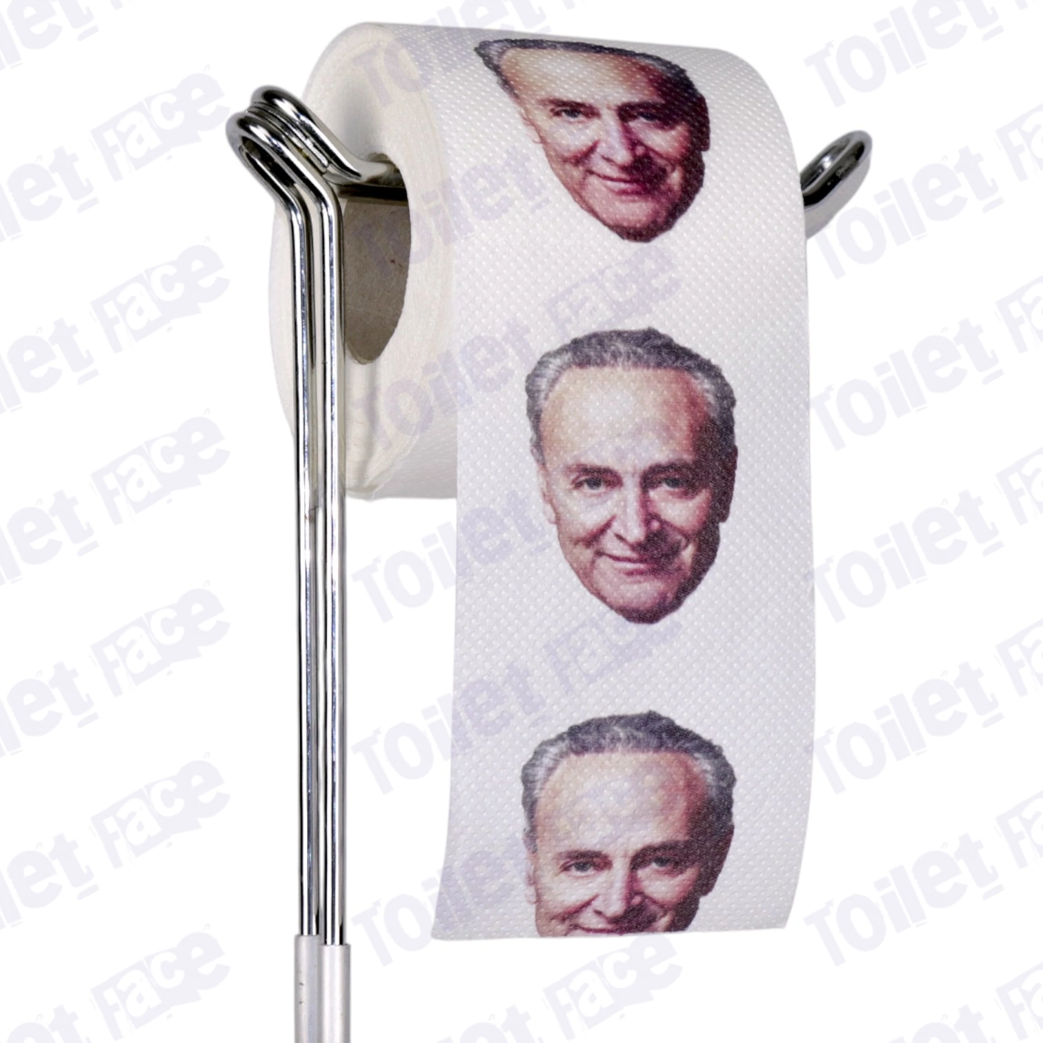 Featuring Chuck Schumer’s face on every sheet of toilet paper & crafted from recycled paper!