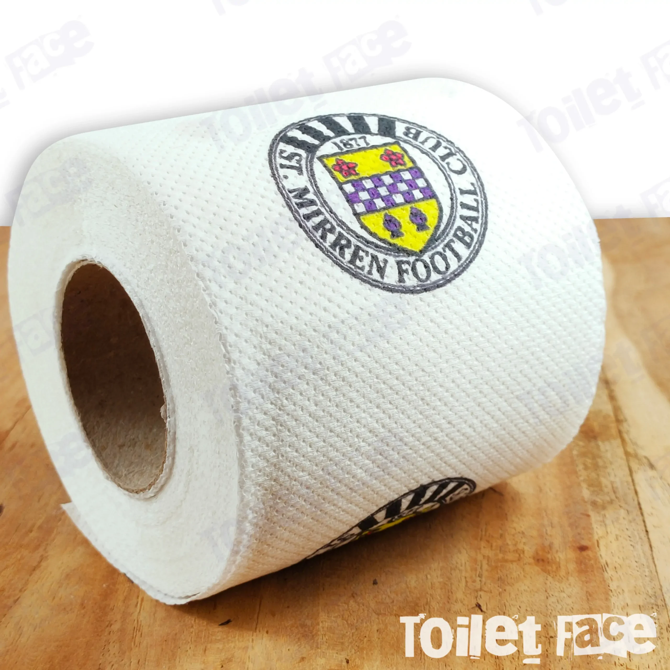 Purchase our St Mirren Novelty Toilet Roll, featuring the logo on every sheet and crafted from recycled paper, making it an eco-friendly gift choice
